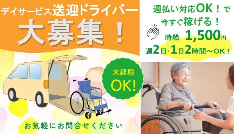 介護スタッフも同乗しますので介護業務はありません。 ※車の乗り降りのお手伝いしていただくことはございますが、車椅子の方などは自動のリフトがありますのでドライバーに負荷がかかることはありません。 未経験の方でも1から研修いたしますのでご安心ください! |